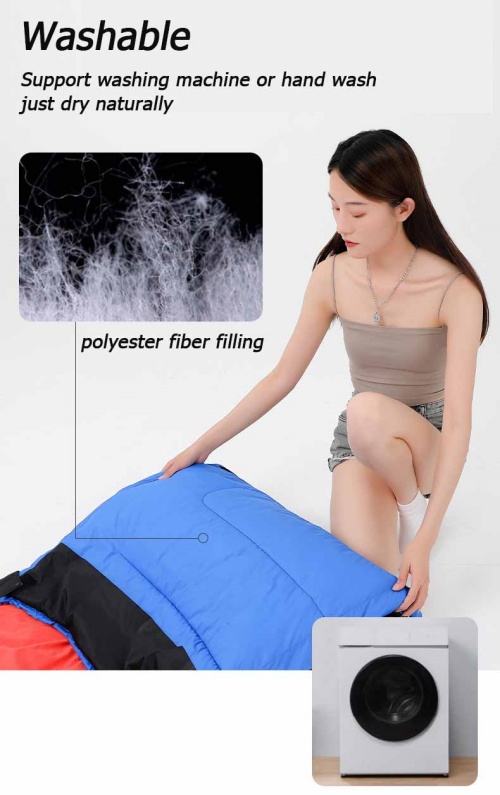Outdoor adventures get messy. This sleeping bag supports machine or hand washing. Filled with polyester fiber, it stays fluffy and warm wash after wash, ready for your next expedition.