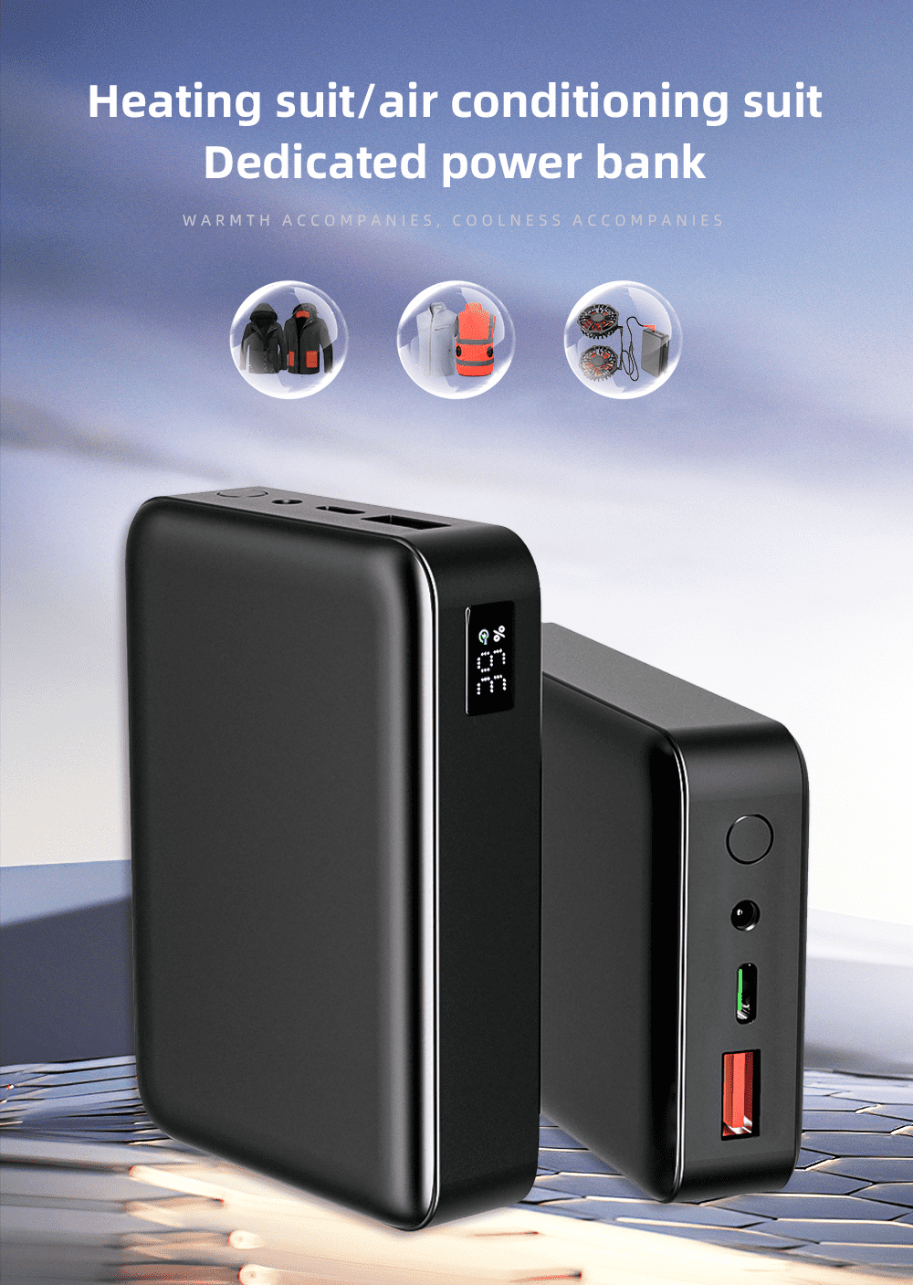 1. Multi-device adaptation:Wide range of applications. It supports various products such as air-conditioning suits, heating suits, mobile phones, and tables, meeting the power demand in different scenarios.